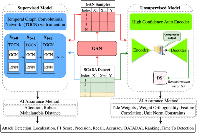 To test the generalizability of HCAE and TGCN, Generative Adversarial Networks (GANs) are used to generate synthetic attack data. GANs can learn from the statistical properties of normal WDS data and generate realistic “poisoned” data representing cyber-attacks. The adversarial testing phase ensures that the model can handle previously unseen data distributions, as is often the case in real-world cyber-attack scenarios.